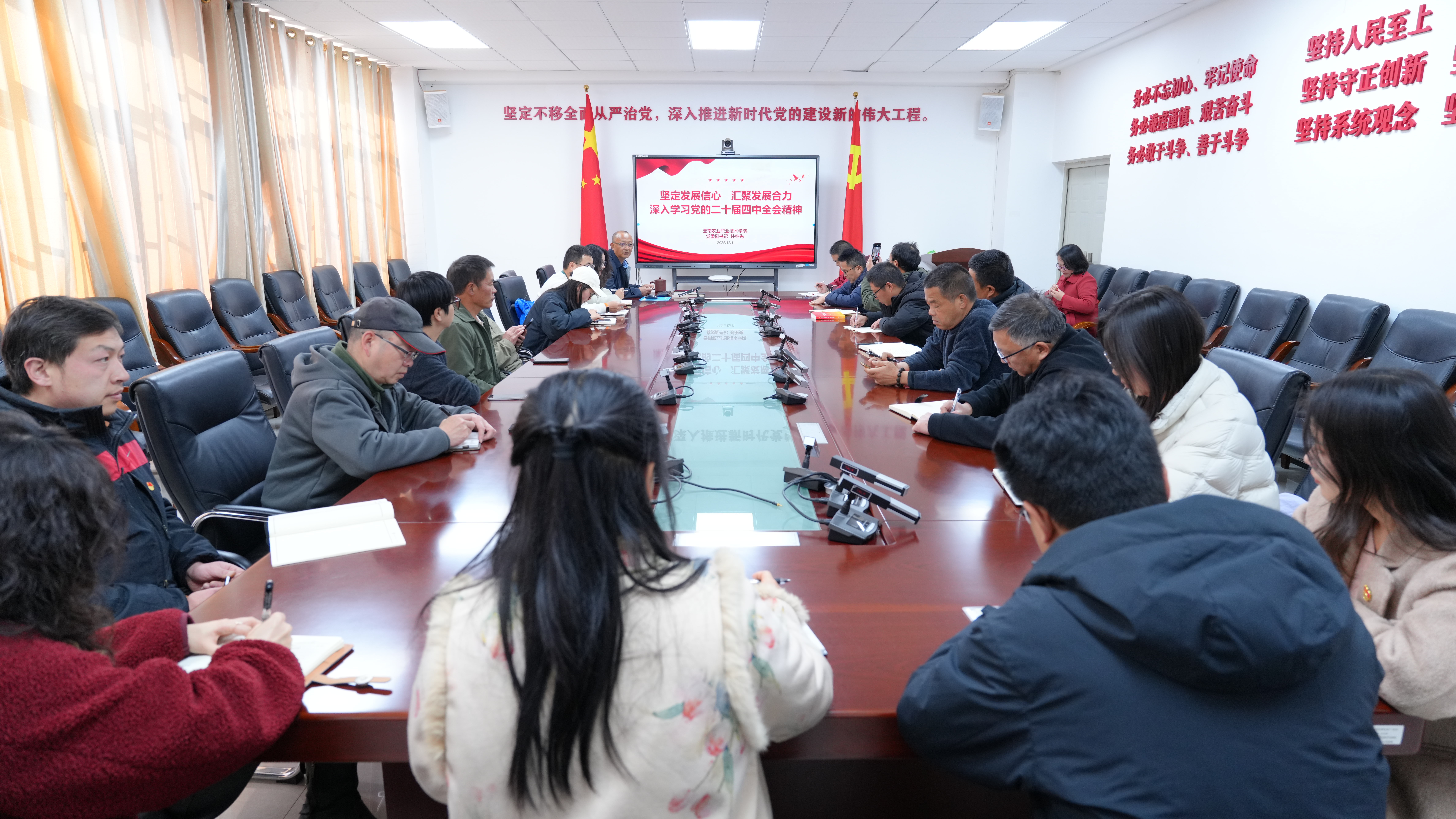 结合学校农业类高职院校的办学定位与发展实际,孙继先副书记重点聚焦加快高水平科技自立自强、引领发展新质生产力,加快农业农村现代化、扎实推进乡村全面振兴,加大保障和改善民生力度、扎实推进全体人民共同富裕三个方面展开学习辅导。他强调,全校党员教师要增强党性修养、严守师德师风,立足本职岗位将全会精神转化为推动教育事业高质量发展的内生动力,紧盯农业农村现代化发展需求,深化产教融合、科教融汇,培养更多懂农业、爱农村、爱农民的高素质技术技能人才,为助力云南乡村全面振兴贡献农职力量。
