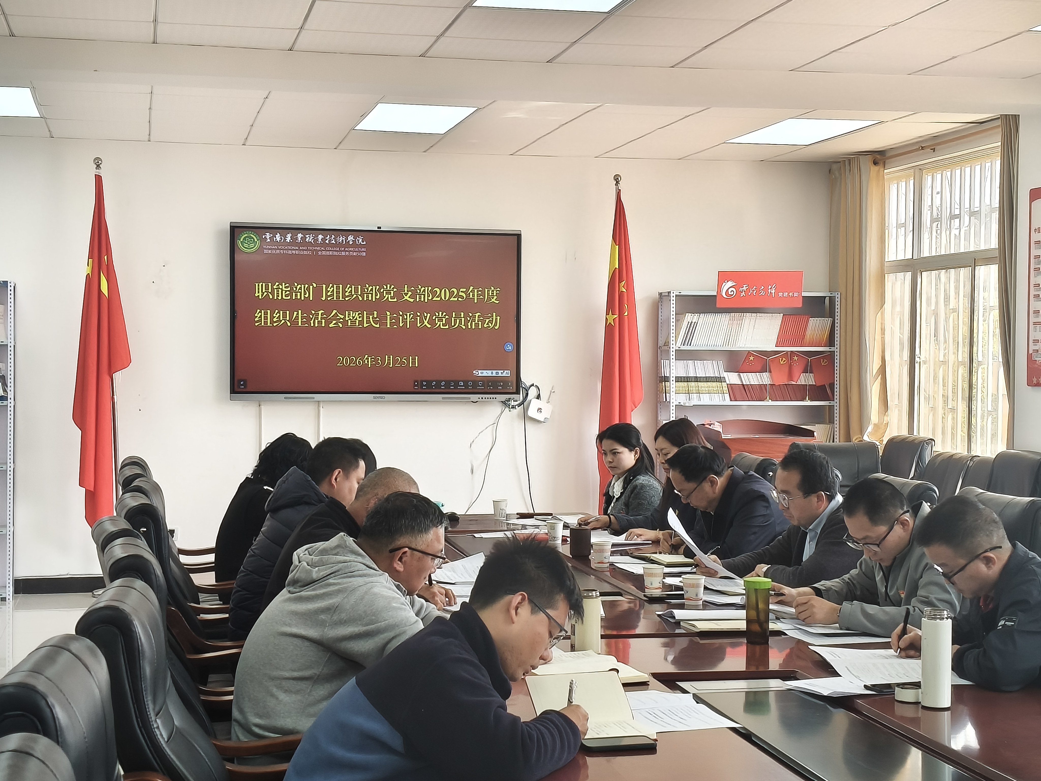党建动态3月25日,职能部门组织部党支部在小哨校区综合楼二楼会议室召开2025年度组织生活会暨民主评议党员活动。学校党委书记文俊同志参加会议,职能部门党总支委员唐丽群到会督导。会议由党支部书记欧阳晓芳同志主持。